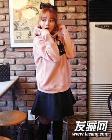 可爱的蝴蝶结扎发,空气刘海搭配带帽的卫衣,很是甜美减龄的一款装扮,少女感十足。