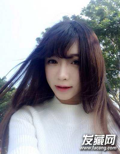 2、长发和凌乱感的空气齐刘海,搭配起来俏皮又不失甜美,飘逸的长发极具女神范,而轻薄的空气刘海也是极具魅力的哦!