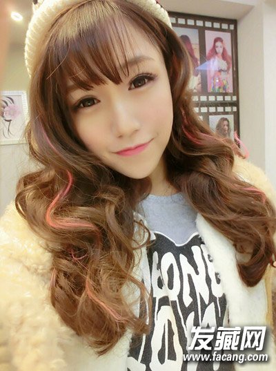 如果把它烫卷,就变成萌萌的造型,空气刘海和卷发搭配特别适合萌妹子,在发丝处挑染粉红色,更显个性和迷人魅力哦。