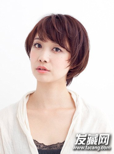 发型点评:这款短发采用多层次刘海设计,让额头看起来更加饱满立体。蓬松的
