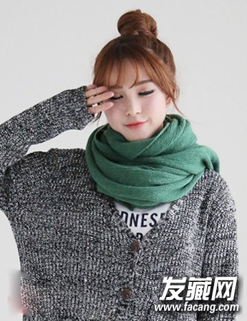 爱的丸子头绑发就最适合个子小小的mm了,寒冬里,毛衣围巾穿搭,娇俏的头型,清新简约文艺范。