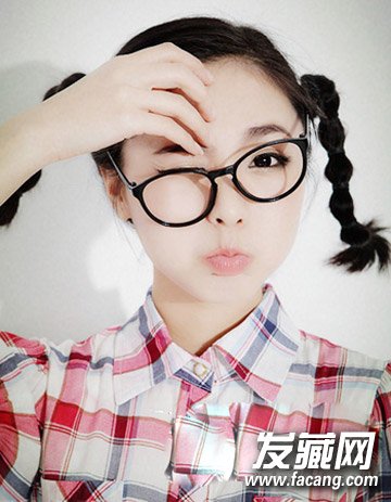 一款可爱的灯笼辫扎出了无比活泼可爱的一面来,可爱的圆脸颇显圆润粉嫩,整个造型的设计搭配上眼镜的点缀勾勒出小女生的可爱与俏皮来。