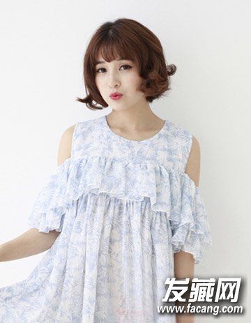 如果妹纸们并不喜欢长发的话不防来试试这款简单大方的淑女式中短发造型,严格来说这也算是一款可爱甜美的波波头造型,而发梢微显蓬松式的可爱蛋卷头