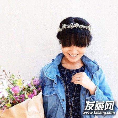 春天做个戴花的文艺女 中分长直发很显文艺范(5)