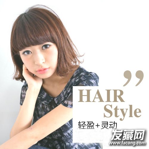 ,将发尾碎剪后外翻卷起弧度,娇俏可爱,打薄的外翻发尾与厚重齐