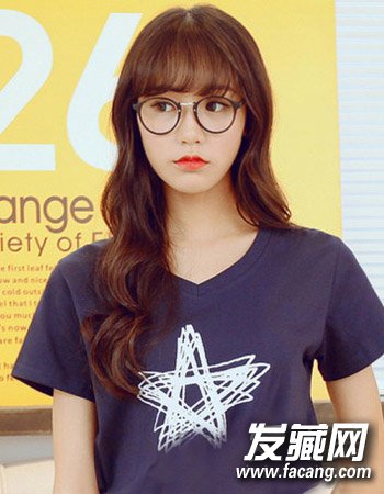 同样是内扣形式的空气感刘海造型设计,简单清新还有修颜效果哦,再配合时尚的栗色染发与浪漫的长发披肩发造型更添十足的唯美气质感。