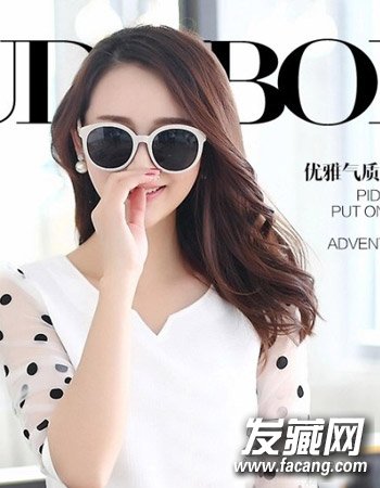 大幅度的偏分造型设计将女生饱满的额头呈现得更加完美精致,再配合时尚的棕色染发设计与侧边式的长卷发造型更添优雅气质感。