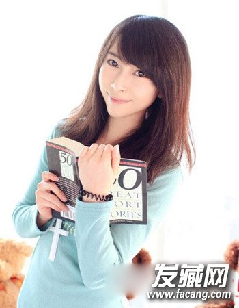 厚重的斜刘海造型设计可是最显女生的温柔气质风的了,再配合这种时尚的棕色染发设计与简单的碎发 形式的中长直发造型同样是一款清纯感十足学院风淑女发型。