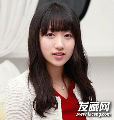 纯黑的发色彰显了清纯气质,齐刘海突显了瓜子脸MM的完美脸型和可爱五官,而微卷的