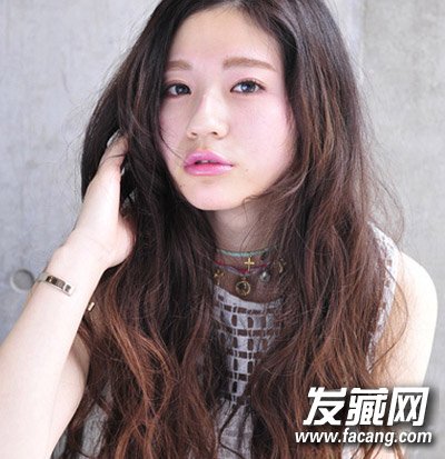 ,侧分刘海修颜,从深棕到浅棕的渐变发色非常时尚,微卷的长发有一种凌乱的美感,充满浪漫的气息。