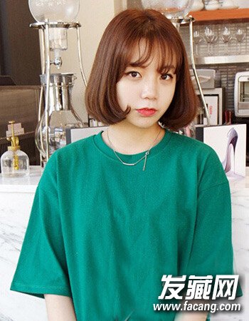 同样是很显森女风式的夏季T恤发型设计,利用的是空气感刘海形式的中短发波波头造型设计,一来增添着女生的灵动可爱风,二来还有简单的修颜效果,配合这种绿色T恤更添十足清新气质风。