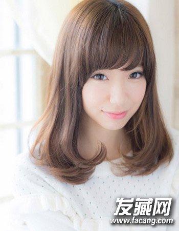 前额的刘海打造成圆弧形状,遮盖住额头展现出甜美慵懒的气质。棕色中长发烫出内扣弧度,勾勒出一张精致的小巧脸蛋,扫上一点淡淡的妆容更显甜美俏丽。