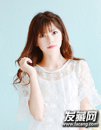 清新的空气感齐刘海造型设计灵动吸睛,再搭配这种时尚的棕红色染发颜色更将女生的肤色衬托得白皙红润,而