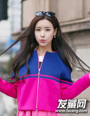 ,利用的是低调自然的发色来增添女生的清新自然感,而搭配这种中分形式的及腰长发造型设计更添十足清新学院风。