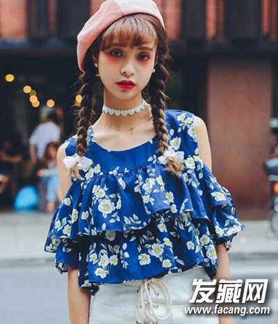 萌萌的双麻花编发!空气刘海营造了饱满额头,而双麻花是减龄利器,绑双麻花的发带变成了漂亮的茉莉花,搭配一顶小帽子,森女系编发的精美升级版哦!