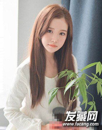 长长的直发随意的披散在两肩,配合上棕色的染发,时尚浪漫,偏分的刘海设计凸显出小巧的五官,甜美又可爱。