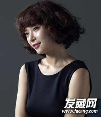 韩味十足的知性蓬松短卷发造型,齐刘海