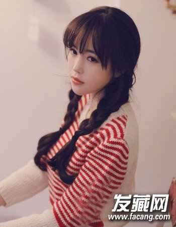 甜美的双麻花辫编发发型,薄