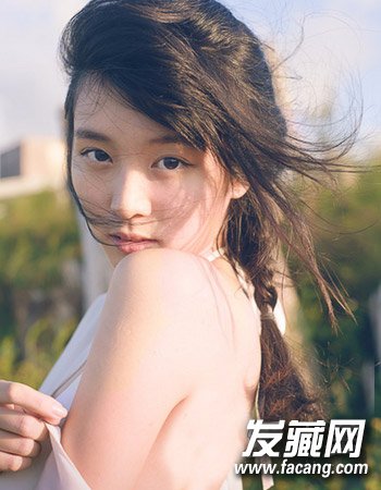 清爽的露额发型的设计与个性的高马尾编发发型不仅时尚而且甜美,清爽的露额发型与整个造型的设计凸显出时尚感来。
