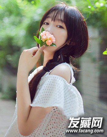 很清新甜美的侧边编发发型,这种慵懒的风格很适合懒懒的夏季哦,而且半透明的空气刘海显得十分抢眼。