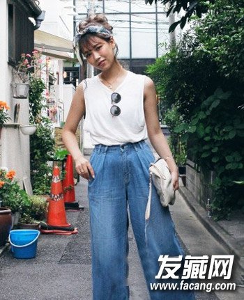 花苞丸子头,搭配一条印花发带看起来更加甜美慵懒哦!
