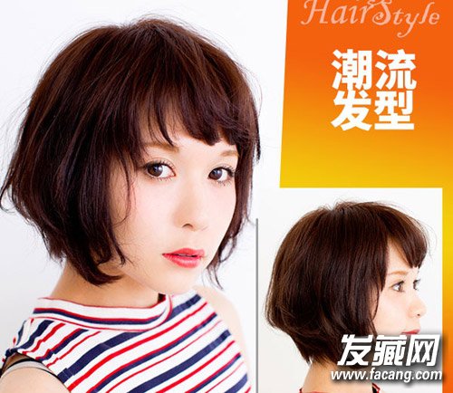 棕红色的发型时尚之余也不会显得过于成熟,整体发型中部较蓬松,而头顶和刘海又看起来较轻薄,减少了“头重脚轻”的违和感。细碎的齐刘海与发尾,完美修饰并延伸了颈部的视觉,看起来线条更显纤瘦明朗。