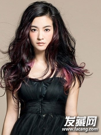 一头时尚感十足的大波浪卷发发型,自然的披散夏利,露额头的设计,更显清爽,发尾设计成挑染的造型,搭配黑色的上衣,时尚中又显性感迷人。