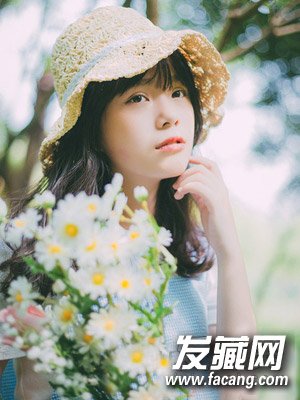 是一款脸型百搭的发型,披肩发搭配帽子很有清纯的田园气息。