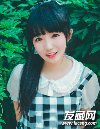 与纯黑色的发色勾勒出无比的清爽与个性来,显得十分可爱。