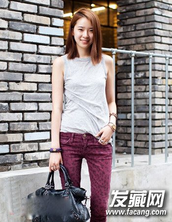 颜色展现出时尚感,搭配简单的无袖衫,清爽感觉扑面而来。