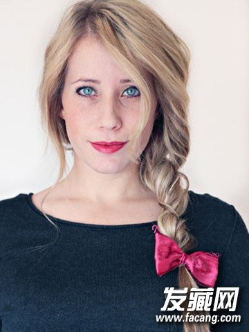 马尾辫也是太普遍的发型了,还是要考虑造型怎么做才能更时尚更靓丽,就要从细节出发了。第一将马尾辫侧编,编的时候要考虑到蓬松度,编好之后用发圈进行固定,固定好之后可以将这几股马尾辫尽可能的向外均匀拽出松散的头发,接着在前额留两缕头发,这样可以更好的修饰脸型,这些基本的发型就搞定了,最后一步就是关键性的蝴蝶结发夹,将它固定在打结处就可以了,这一刻慵懒范儿的马尾辫就完成了。