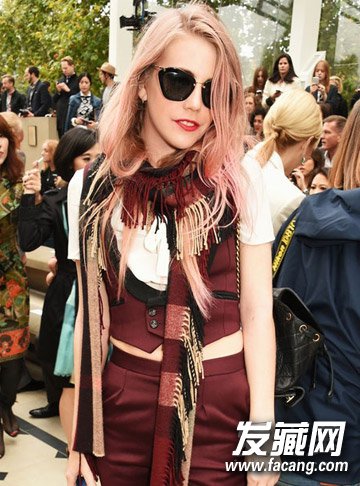 India Rose James近日亦在伦敦时装周上亮相。发梢微懒的粉色卷发配以黑超遮面,让这位美人酷劲十足的同时,充满了女性独有的妩媚风情。