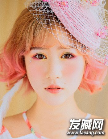 ,而且这种可爱的烫卷发与个性的染发颜色搭配起来,这种头纱的造型显露出无比的个性与时尚感来。