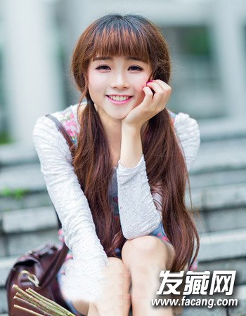 甜美的厚重感刘海与长发双马尾扎发,整个造型不仅时尚而且显露出个性与时尚的一面来,勾勒出时尚与甜美。