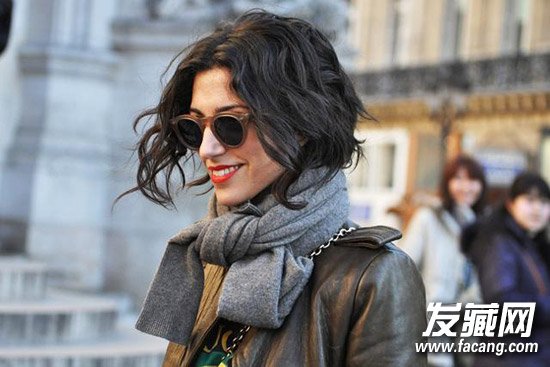 这样的bob卷发真的是妩媚动人,头发一部分长度藏在围巾里,很时尚的方式。