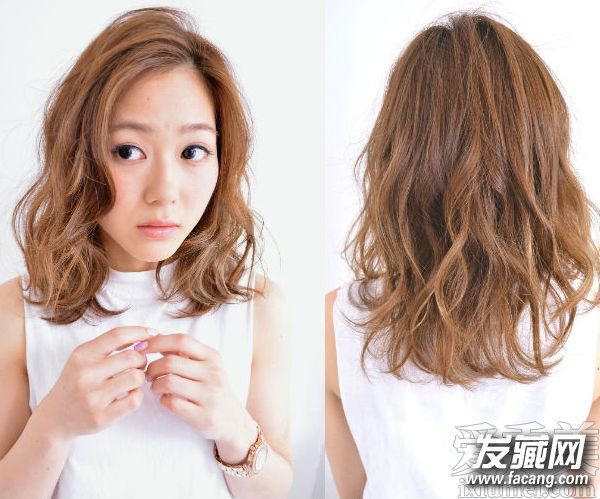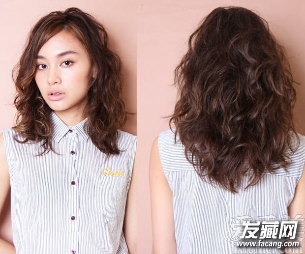 丰盈的烫发设计,轻松烘托出一张精致的脸型,显得颇有甜美范,深棕色的染发衬托出白皙的皮肤,时尚显清新。