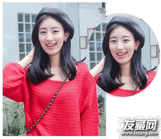 以乌黑亮丽的自然发色来增添女生的清纯气质感,再搭配清爽的露额发型设计与内扣形式的中长发同样纯美迷人。