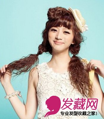 发型烫发扎成两个松散的马尾辫,带出女生随性的气质,给人一种非常舒服的柔和美,一个帽饰点缀头发,尽显淑女的俏丽活泼。