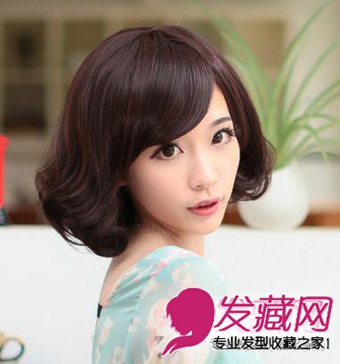 最新的短发烫发发型 斜分弧形刘海将脸型修饰娇小精致(2)
