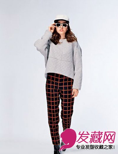 还有格子的长裤,英伦风很是优雅。