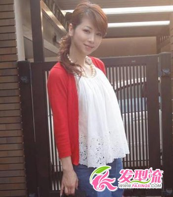 栗色的秀发在阳光下显得格外抢眼,秀发随意自然扎起,发尾摆放在肩上,活泼生动。斜刘海制造出蓬松感,更好地修饰了脸型,也带出几分俏皮。甜美的娃娃装外搭大红色开衫,让您迅速年轻。