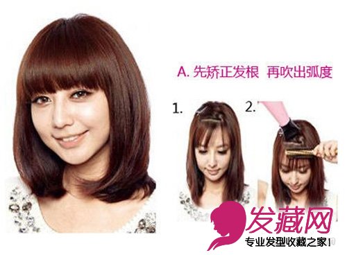 2用梳子将歪刘海拉至反向,以吹风机吹发根约5秒,冷却后放开。