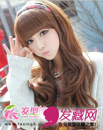 长长的波浪卷发释放着浪漫的唯美气息,时尚女孩酷爱的棕黄色发色,不仅能衬托白皙的皮肤,还能给造型添加更多的甜美系数。搭配齐刘海的长发发型更显得乖巧可爱,风姿迷人。