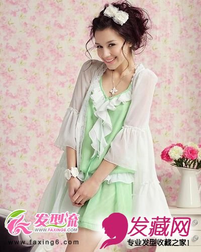发型,也可以增加女生的甜美度。凌乱的发丝加上白色蝴蝶结发饰,两鬓间散落几缕卷发丝,清新而甜美。