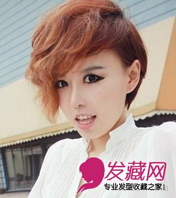 颇具个性魅力气质的短发烫发发型,增加了发型的时尚个性感,刘海发型也经过烫发发型设计的处理,更有时尚的韵味,加染上棕栗色的染发颜色,令这款短发烫发更加娇艳时尚,是一款夏日清爽