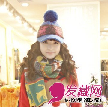 换上宽松的动物图案的卫衣和围脖,搭配针织帽,造型超赞的,将蛋卷发披在肩上,非常可爱。