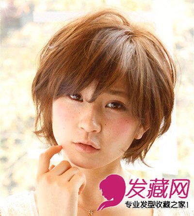 蓬松波波头中带着极重的凌乱卷发效果的设计,给圆圆的脸型带来更加精致和圆滑的效果衬托,圆脸变瓜子脸。齐刘海自然地梳在额头上,脸颊后一点的位置也梳出微微向外的卷起的发丝,上层的秀发有着很雅致弧度,凌乱却也添小女生风味。