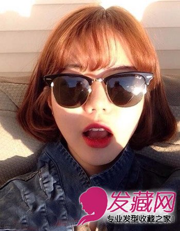 韩式个性的内扣式烫发发型,空气刘海搭配上黑镜更显气质与时尚感,所以整个造型特别显气质,一款时尚的发色更显时尚感。