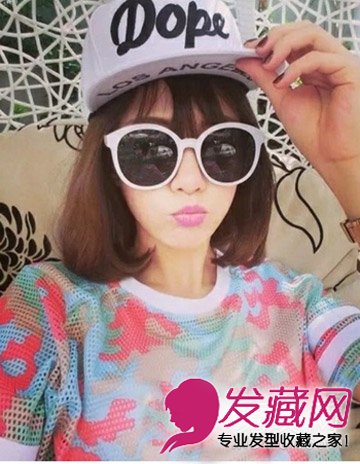 可爱的齐肩发型戴上帽子当然也是不错的一款造型哦,发尾微微的内扣列显甜美与气质感,空气刘海平添时尚感,帽子也显得潮感十足。