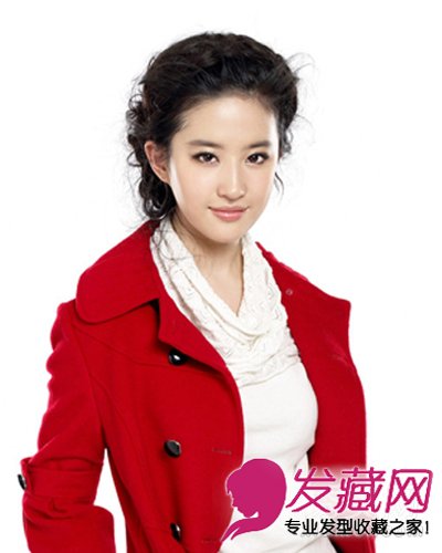 将头发随意的盘起,完美的鹅蛋脸,搭配红色的外套,精神而且干练。